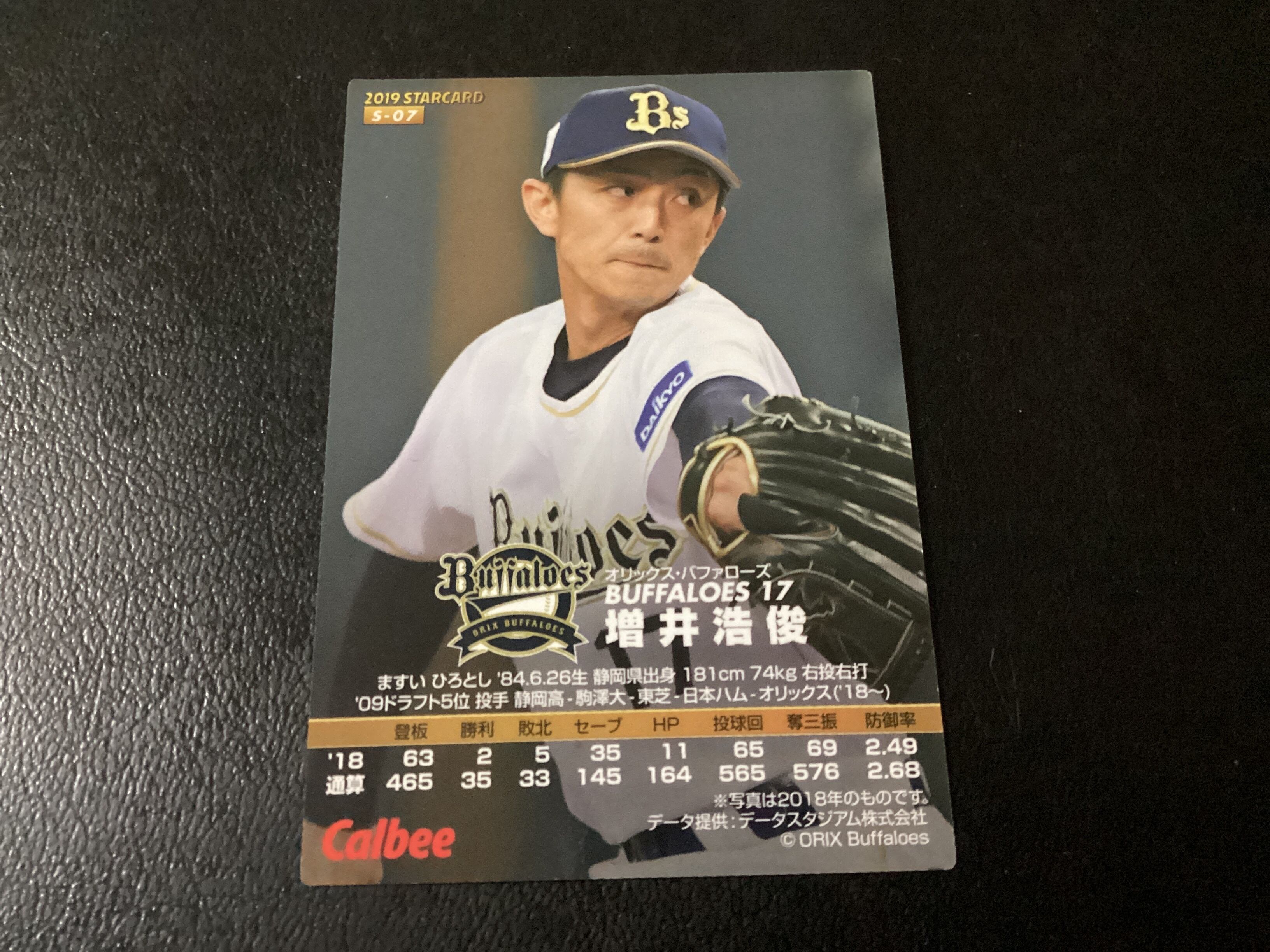 カルビー2019 スターカード(ノーマル版) 増井(S-07) オリックス 管理番号172 -||- 魅力的なピッチングスタイルを持つプロ野球選手「増井」がフィーチャーされた、カルビーの2019年版スターカードです!そのリアルなデザインと迫力のある投球シーンが、ファンやコレクターを惹きつける逸品です。この一枚を手に入れることで、オリックス・バファローズの魅力を存分に堪能できます。 -||- あなたのコレクションに特別な存在感をもたらす「増井」。この商品は、プロ野球ファンやコレクターにとって貴重な逸品となることでしょう!特別なプロ野球の世界を共に楽しみ、新たな発見を広げていきましょう! -||- ※商品は丁寧に保管し、湿気や傷にご注意ください。