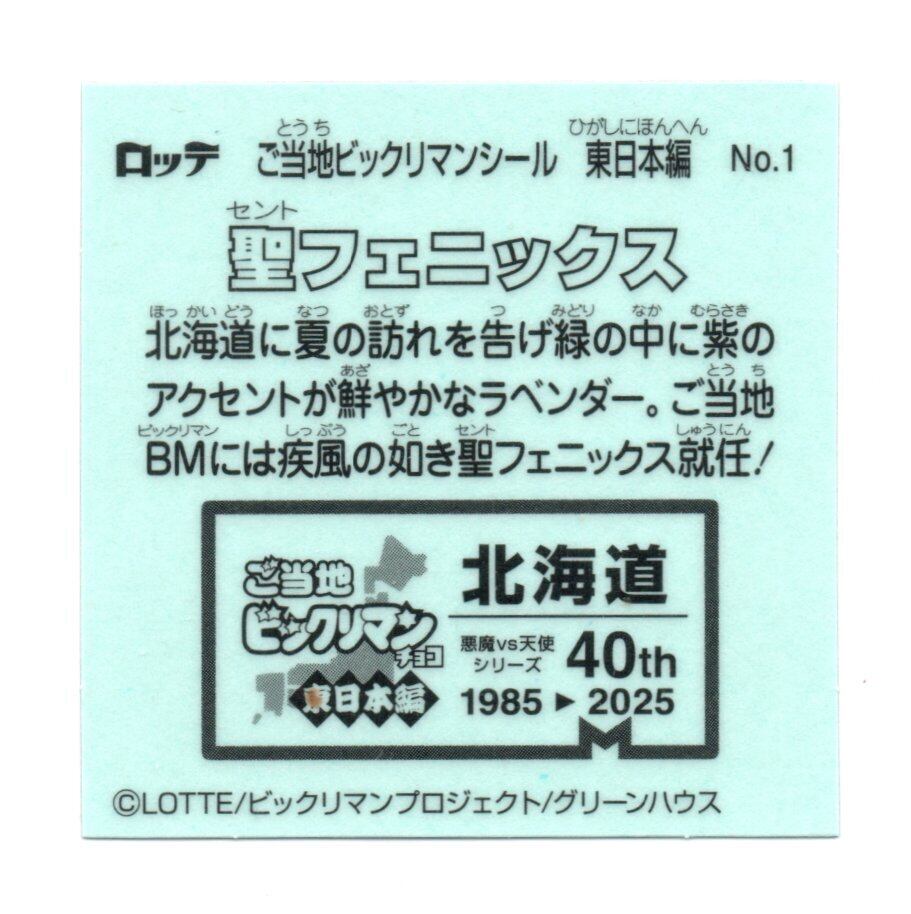 ビックリマン ご当地ビックリマン 東日本編 「聖フェニックス」 No.1 北海道 -||- 魅力あふれる「聖フェニックス」が特別な形で登場する、貴重なビックリマンシールです!その独自のデザインと高品質な仕上がりが、ビックリマンファンやコレクターの心をしっかりと引き付けるアイテムとして際立っています。このシールを手に入れることで、ご当地ビックリマンの世界をさらに深く楽しむことができるでしょう。 -||- あなたのコレクションに特別な価値をプラスする「聖フェニックス」。この商品は、ビックリマンファンやコレクション愛好者にとって非常に魅力的な一品です!特別なビックリマンの魅力を共に体感しながら、新たな興奮を見つけていきましょう! -||- ※商品は丁寧に保管し、湿気や傷にご注意ください。