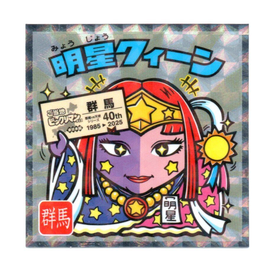 ビックリマン ご当地ビックリマン 東日本編 「明星クィーン」 No.10 群馬 -||- 魅力あふれる「明星クィーン」が特別な形で登場する、貴重なビックリマンシールです!その独自のデザインと高品質な仕上がりが、ビックリマンファンやコレクターの心をしっかりと引き付けるアイテムとして際立っています。このシールを手に入れることで、ご当地ビックリマンの世界をさらに深く楽しむことができるでしょう。 -||- あなたのコレクションに特別な価値をプラスする「明星クィーン」。この商品は、ビックリマンファンやコレクション愛好者にとって非常に魅力的な一品です!特別なビックリマンの魅力を共に体感しながら、新たな興奮を体験していきましょう! -||- ※商品は丁寧に保管し、湿気や傷にご注意ください。